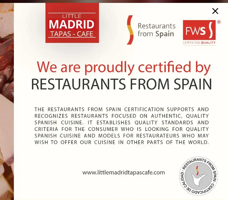 Posted on Mihir Patel & Ashley LopezTrustindex verifies that the original source of the review is Google. Top notch happy hour! Amazing ambiance and service. Worked hard to make sure we has a great experiance and meal, even though we were just happy hour hunters. Also the presentation of the food was amazing. Would def recommend to others and go back for a formal dinner.Posted on TL CTrustindex verifies that the original source of the review is Google. Insanely authentic. Best tapas I've had outside of Spain in the last 25 years-and I lived there for months! Even better than highly rated restaurants in Barcelona. I hope Michelin is paying attention to this place. The staff was incredible and went out of their way to accommodate our ruckus party of six. What an experience-what a birthday!!! I can't wait to go back!Posted on Peter MonkTrustindex verifies that the original source of the review is Google. On Saturday evening, we dined at Little Madrid Tapas Cafe with some friends visiting from out of town. Our friends had recently returned from Seville, Spain and were amazed at the authenticity of both the food and the drinks. Everything about the evening was perfect - the service, the attention to detail, the dishes (the croquettes and the stuffed dates were off the charts amazing!) Also, the Sangria was on par with what our friends enjoyed in Spain. But the highlight was the service throughout the evening. We felt constantly cared for but never rushed. If we had questions about drinks or the food samples were enthusiastically offered. Finally, the atmosphere was the icing on the cake for the evening. Straddling the line between intimate (perhaps romantic if you’re on a date) and energetic, the vibe at Little Madrid Tapas Cafe was wonderful. We had late reservations so towards the very end of the evening, the staff put on some festive music and wound their way through the room Conga Line style, serving free Bota style Sangria to all those who wanted to partake. Thanks again to the entire Team at Little Madrid Tapas Cafe for a a truly magical evening. Needless to say, we will be back!Posted on Sameet SapraTrustindex verifies that the original source of the review is Google. The potatoes, mussels, meatballs, and croquettes were the clear highlights among the tapas for me. I’d skip the cheese platter. The ambiance felt like I was exactly in Madrid, and one time a guy came around and poured wine down everyone’s throats.. yeah kinda cool. The dishes that were good were really really good, but not every dish is on that level.Posted on Jasmine ReddyTrustindex verifies that the original source of the review is Google. Incredible tapas, food comes fast & service is great! Pricing is also reasonable. Definitely recommend!